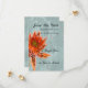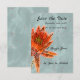Save the Date Retirement Party Design mit einem gesprenkelten türkisfarbenen Hintergrund und einer großen orangefarbenen Wasserlilie. Alle Wörter auf der Vorderseite des Designs können geändert werden.
