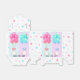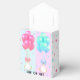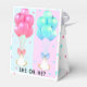 Kreatives Geschlecht zeigt Geschenkboxen mit blauen und rosa Ballons, Babys und Sternen in Gastgeschenken.