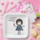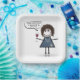 Stick Girl in Sneakers und blaues Denim Jean Kleid mit Perlenhalskette, Haar, und halten ein Glas Rotwein für ein Cocktail Party.