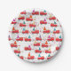 Eine niedliche Abbildung eines roten Feuerwehrwagenmusters mit Party-Hüten, blühenden Party-Hörnern und Konfetti-Regen. Der bezaubernde rote Motor eilte raus, um ein Feuer zu löschen. Ideal für eine Geburtstagsfeier oder eine andere Veranstaltung. Ideale Geburtstagsgestaltung oder Geburtstagsgeschenk für LKW-Notruffans.