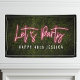 Rosa Neonzeichen inspiriert Skript "Let's Party" über den Hintergrund von Boxwood-Grün mit benutzerdefiniertem Weißtext und Rahmen.