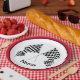 Geprüfte Party-Papierplatte für das Flag-Design mit benutzerdefinierbarer Text- und Ringfarbe.