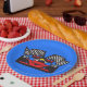 Rennwagen Design Papier Party Plate. Der Hintergrund kann in die gewünschte Farbe (angepasster Hintergrund) geändert werden.