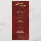 Vergnügen Sie sich und feiern Sie Weihnachten oder Neujahr mit der Weihnachts-Dinner-Party-Karte, die mit goldfarbenen Akzenten auf rotem Hintergrund gestaltet wurde. Um Ihre persönlichen Vorspeisen, Nachspeisen und Desserts zu kreieren, fügen Sie einfach Ihre Daten in unsere einfache Vorlage ein und ersetzen den Beispieltext. Stellen Sie sicher, dass Sie die passende Feier Napkins, Papier Teller und Zubehör. Viel Spaß!
