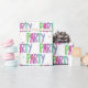 Farbiger Party mit Konfetti auf weißem Hintergrund. Die Hintergrundfarbe kann geändert werden.