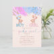 Niedliche Junge oder Mädchen Teddy Bär Geschlecht offenbaren Party Einladung mit Gold Glitzer und Aquarell blau & pink Splash.