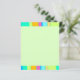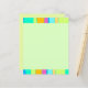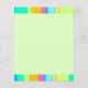 Farbige Balken in Orange, Hellblau, Türkis, Rosa, Grün und Gelb erscheinen oben und unten auf diesem flachen Blatt. Die zentrale und die hintere Seite sind gelbgrün.