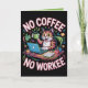 Faites sourire votre ami(e) accro au café avec cette carte de vœux hilarante "No Coffee No Workee" (pas de café, pas de travail). Cette phrase joueuse capture la vérité sacrée que pour les vrais amateurs de café, rien de productif ne se passe avant cette première gorgée magique. Cette expression rimée astucieuse signifie simplement ceci : sans café, vous n'obtiendrez aucun travail. Elle s'adresse directement à quiconque fonctionne en mode AC (avant café) et comprend que la caféine n'est pas un luxe, c'est une nécessité.
