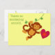 Ce petit singe se balance pour dire qu'il est des bananes à votre sujet sur cette mignonne carte postale de Saint Valentin. Customisez le message pour dire exactement ce que vous voulez.