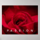 Poster mit einem Foto-Druck von einer schönen rote Rose mit Text PASSION. Passen Sie dieses Objekt an oder kaufen Sie, wie es ist.