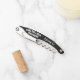 Ein Korkenzieher ist personalisiert mit "Pairs well with all...Besonders lustig!" vorne und auf der Rückseite mit weißem, schicken Buchstaben auf schwarz. Ideal für sich selbst oder als Geschenk für jeden Anlass - Geburtstag, Junggeselinnen-Abschied, Probe Abendessen und vieles mehr.