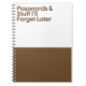 For all the things you’ll forget by tomorrow! This witty notebook says "Passwords & Stuff I’ll Forget Later" — perfect for jotting down logins, random thoughts or shopping lists you’ll ignore. A fun gift for friends, colleagues or anyone with a forgetful streak. Stay organised with a smile!