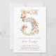 Jolie aquarelle 5ème anniversaire invitations avec les fleurs disposées en forme de numéro "5". Les fleurs sont en jaune pastel, rose et violet. Le verso des cartes sera imprimé avec un motif de bandes de coordination.