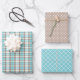 Pastel Aquamarin Blue Coffee Brown Streifen Punkt Geschenkpapier Set