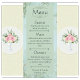 Fügen Sie die Details des perfekten Essens für Ihren besonderen Tag mit diesem schönen Vintagen Design von pastellfarbenen aquamarinen Tönen mit delikaten weißen Blume auf diesem charmanten Hochzeitsmenü hinzu.