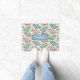 Dieses personalisierte, spielerische und nostalgische Doormat weist ein Muster aus niedlichen, pixeligen Dinosaurier-Silhouetten in sanften, pastellfarbenen Arkadenfarben der 90er Jahre auf, wie Minzgrün, Babyblau, Pastellpink und Lavendelfarben, was eine lustige und dennoch sanfte Ästhetik schafft.