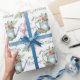Pastel Blue Brush Script Frohe Weihnachten Blumens Geschenkpapier