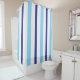 Pastel Blue Deep Blue White Summer Stripes Duschvorhang