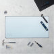 A trendy personalized pastel blue desk mat. This minimalist design features a soft gradient blue and modern calligraphy script font.