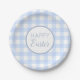 Pastel Blue Happy Oaster Kariertes Muster Pappteller