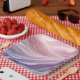 Weiche, gewellte Schichten in rosa und lila Farbtönen erzeugen einen abstrakten und beruhigenden visuellen Effekt