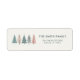Ein festliches Weihnachtslabel mit pastellfarbenen Bäumen und modernem Drehbuch, ideal, um Ihre Urlaubspost und Einladungen zu personalisieren.