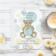 La conception du produit est faite d'un ours en peluche tenant un cadeau. Ce dessin original de jouets pour animaux avec texte personnalisé fait des invitations mignonnes et uniques de douches pour bébés pour les garçons et les filles.