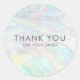 Elegante Imitate opal Muschel danke Ihnen Aufkleber in hübschen Pastelltönen von Rosa, Blau, Grün und Gelb mit Ihrer benutzerdefinierten Nachricht. Ideal zum Verpacken für Schmuckdesigner und andere kleine Unternehmen.