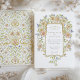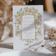 Diese bezaubernde Rokoko-Hochzeitseinladung ist mit zarten Pastellfloralen geschmückt, die in einem verzierten goldenen Rahmen angeordnet sind. Das Design besticht durch eine elegante Kaskade aus handgemalten Pfirsich, Buttercreme und Perwinkelblüten, die mit üppig grünen Blätter und anmutigen botanischen Kurven verwoben sind. Der weiche Aquarelleffekt des Rahmens bringt eine romantische, helle Atmosphäre in die Einladung. Die Rückseite ist vollständig illustriert mit einem feinen Blumenmuster, das an die Wandbilder des Palastes oder antike Textilien erinnert. Symmetrisch und sanft fließend, verwendet es Vintage französische Motive und natürliche Blumenelemente, um eine zeitlose, raffinierte Ästhetik zu schaffen. Ideal für Gartenhochzeiten, Frühlings- oder Sommerzeremonien und für Paare, die zu historischem Charme und künstlerischem Detail gezeichnet sind.