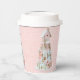 Das Design des Papierbechers besticht durch eine trendige Pastell-Lebkuchenschloss aus 4 Schichten Kochhäusern. Die Farben sind hellrosa, hellblau und hellgrün und bräunen auf einem rosa Hintergrund mit weißem Schneeflockenmuster.