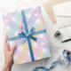 Ein Pastel Gingham Kariertes Verpackungspapier mit kleinen weißen Herzen für Babyduschen.
