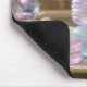 A super sweet Mouse Pad with a fun illustration of translucent macaron cookies in pink, teal, yellow and blue on a plate in a cute kitchen.