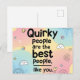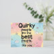 A lovely and uplifting design featuring the heartwarming quote, "Quirky people are the best people, like you." The text is set against a soft, blended background of pink, yellow, and blue pastel gradients, framed by delicate doodle elements like buttons, clouds, and butterflies. This aesthetic is perfect for positive encouragement, best friend gifts, self-love affirmations, and anyone who appreciates a clean, colorful, and wholesome design.
