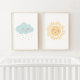 Ajoutez une touche finale à l'espace de votre petit avec cet ensemble de 3 empreintes de nuages heureux, arc-en-ciel et de pépinière solaires.