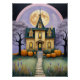Eine leckere, aber ruhige Drehung auf einer klassischen Halloween-Szene. Dieses Kunstwerk besticht durch ein Spuk Haus in sanften Pastelltönen, stehend gegen einen lila Himmel mit leuchtendem Vollmond. Die umliegenden Bäume sind mit lebhaften lila Blätter geschmückt, und die Erholung der Kürbis im Vordergrund ist ruhig, was einen zauberhaften und einzigartigen Einschlag für die Saison schafft.