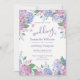 Pastel Hydrangeas Bläserei Einladung in Weich-lila-, Blau- und Rosatönen auf weißem Hintergrund. Der erste Text enthält: die Namen der Braut und des Bräutigams, Datum, Uhrzeit, Ort und Adresse. Der umgekehrte Text enthält: Ihr Empfang Position und Details, auf einem weichen lila Hintergrund mit weißem Text, und Hydrangeas Bouquet. Um diese Einladung zu personalisieren, fügen Sie einfach Ihre Daten in unsere einfache Vorlage ein und ersetzen den Beispieltext. Schauen Sie sich unbedingt die komplette Pastel Hydrangeas Wedding Collection an, um passende Karten und Zubehör zu erhalten.