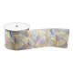 Add a graceful, upscale touch to gifts and décor with this satin ribbon featuring a luminous leaf-inspired abstract design. Soft shades of blue, lavender, blush, and ivory flow through the pattern, while elegant gold-look outlines create a refined stained-glass effect that feels airy, modern, and sophisticated. The silky satin finish gives the ribbon a smooth texture and gentle sheen, making it perfect for elevated gift wrapping, wedding details, floral arrangements, event décor, and boutique packaging.