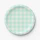 Pastel Mint Green Oaster Kariertes Muster Pappteller