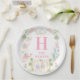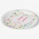 This Christmas paper plate design features a nativity image of baby Jesus sleeping in a manger with Mary and Joseph in the center surrounded by a the wise men and two angels. In the center you can add your initial and a name.