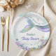 Inspired by shimmering sea glass and soft coastal tides, this mermaid design blends pastel aqua, lilac, and hints of golden sparkle. The flowing tail and delicate seaside florals create an enchanting underwater atmosphere that feels elegant yet playful — perfect for celebrating your sweet little mermaid.