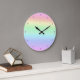 Pastellfarbener Regenbogen, in Ober Streifen, mit lila Schriftart.