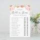 Rate mal, wer es gesagt hat! Braut oder Bräutigam? Beantworten Sie diese Fragen, um es herauszufinden! Fügen Sie diese lustige und spielerische botanische Duschspielkarte zu Ihrer Veranstaltung hinzu. Es zeigt Aquarellbilder von Pfirsichen, rosa Blume mit einem Akzent im Grünen. Sie können die Karte personalisieren, indem Sie zurückliegende Texte hinzufügen. Diese pastellfarbene botanische He Said, She Dusche Spielkarte ist ideal für Frühjahr- und Sommerhochzeiten und Brautparty.