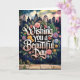 Ein sanfter, eleganter Hintergrund mit Pastellfarben von hellrosa bis lavender und babyblau. Feine, von Hand gezeichnet Blumengesteine wie Blätter und Blätter verstreut, schaffen eine helle, luftige und anmutige Atmosphäre, die das lebendige Blumendesign an der Vorderseite ergänzt.