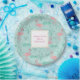Papier Teller mit einem skurrilen Muster. Pastellrosa Flamingos auf hellgrünem Hintergrund. Grüne Lilienpolster und Lotus-Blume. Niedliches tropisches Flair.