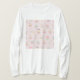 Stay cozy and stylish in this long-sleeve tee featuring an adorable food illustration. The design showcases a seamless tile graphic of cute bakery treats and whimsical frosting on a gentle pastel pink gingham background, accented with mint blue yellow colors. The sweet dessert pattern makes this shirt a unique, comfortable staple for everyday wear or a fun statement piece. Show off your love for repeating sweethearts and charming custom party decor aesthetics with this soft, fashionable top.