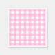 Dieses hübsche rosa Gingham-Muster fügt einem sommerlichen Party, Geburtstag oder anderen Gelegenheiten einen niedlichen, ländlichen Akzent hinzu. Hier auf einer Papierserviette aus Party dargestellt. Passen Sie das Muster so an, wie Sie möchten. Der Frühling und der Sommer sind der richtige Zeitpunkt, um mit diesem klassischen Karo-Design zu feiern!
