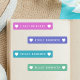 Pastel Boho Rainbow Kids Waterproof Nom Étiquettes avec silhouettes cardiaques à chaque extrémité. Stickers Étiquette de nom personnalisé en rose, violet, bleu et vert.