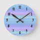 Diese hübsche Uhr besticht durch ein sanftes, pastellfarbenes Regenbogen-abstraktes Muster aus blauen, lila, grünen und türkisfarbenen Streifen.