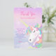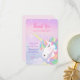 Einhorn-Kunstwerk mit Wasserfarben-Hintergrund und zarter Wolkenillustration im Pastell-Regenbogen-Look. Dieses fantastische Märchen-Layout verfügt über eine elegante Schreibschrift-Typografie und traumhafte Pastellfarben, perfekt für eine magische Mädchen-Geburtstagsfeier.