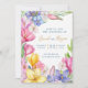 Elegante pastellfarbene Frühlingstulips und Crocus mit Grün bilden diese schöne Hochzeitseinladung.